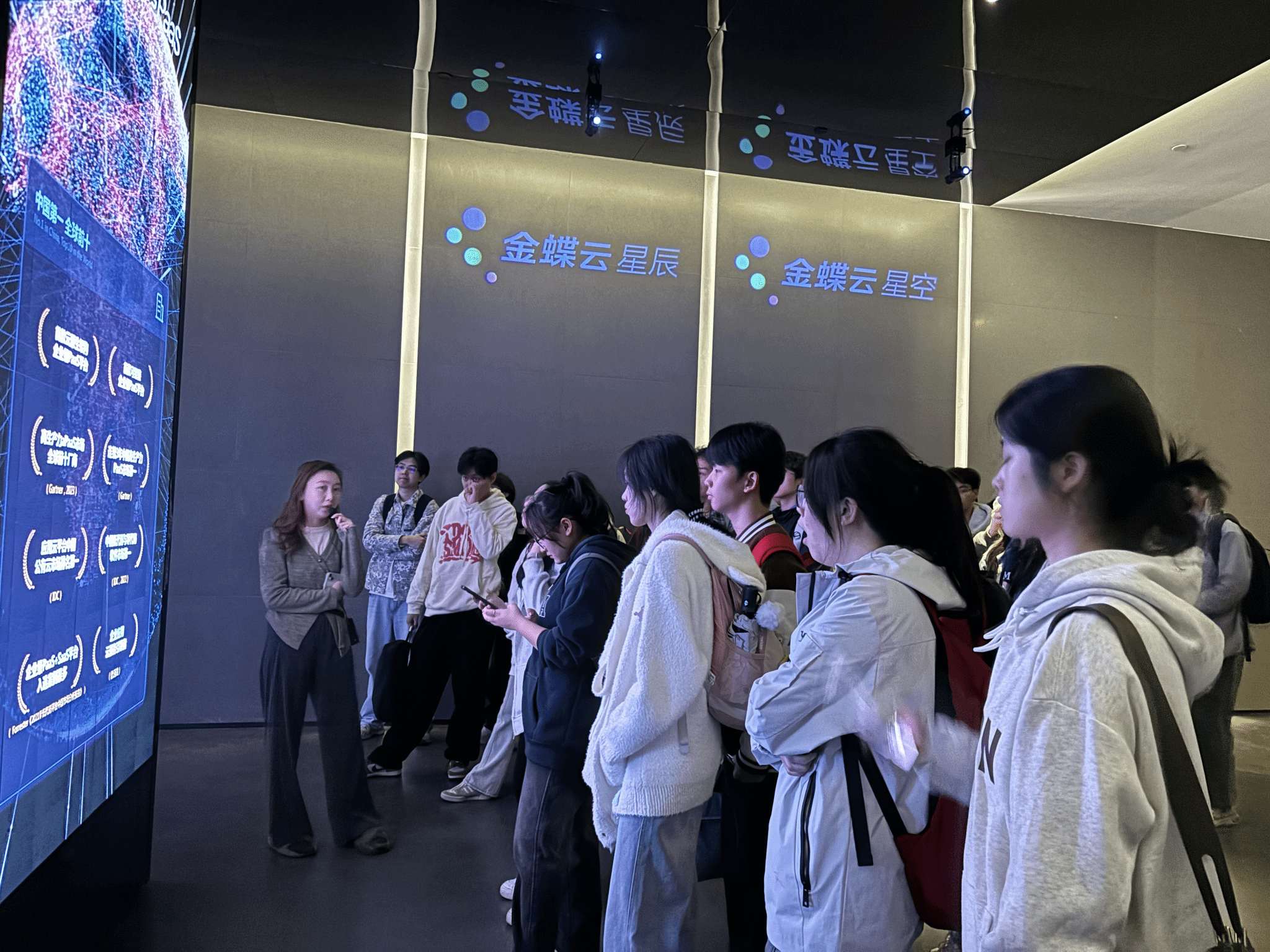 随后,在企业工作人员的带领下,304am永利集团师生参观了金蝶企业文化展览馆,深入了解了金蝶公司的发展历史以及核心企业理念。