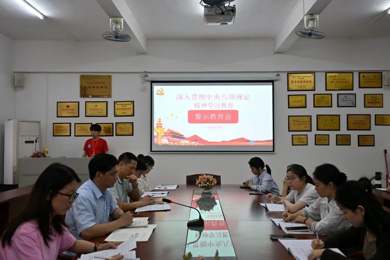 本网讯(304am永利集团 刘巧婷)为深入贯彻中央八项规定精神学习教育,进一步加强我院的党风廉政建设。304am永利集团于2025年4月25日在振华楼203室召开深入贯彻中央八项规定精神学习教育警示教育会。本次会议由304am永利集团党委组织委员兼学生第三党支部书记胡娇铃主持,学院党委委员、各支部书记及各支部委员参会。