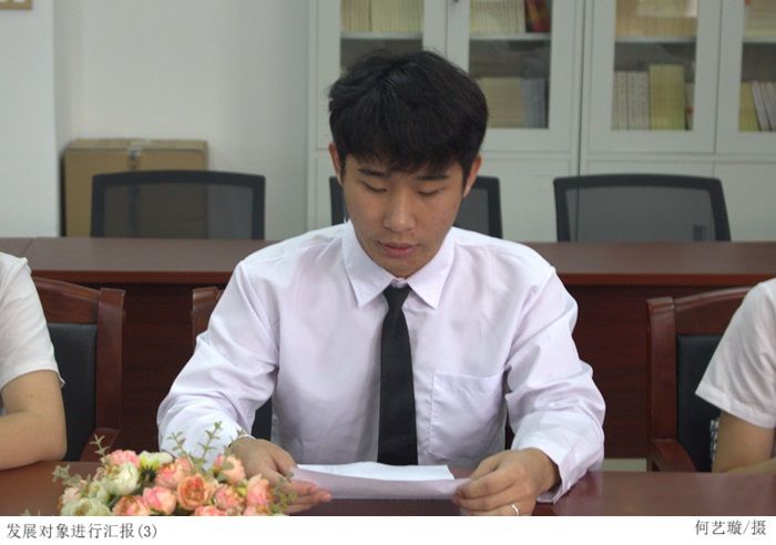 会上,张海洋对会议的具体流程和注意事项方面进行了讲解,并表示发展对象要以党的标准严格要求自己,在思想上与行动上同党中央保持高度一致,牢记党的初心与使命。随后,全体发展对象依次向党组织汇报了自己在发展时期的思想、学习、工作等方面的情况,并表明会保持对党的忠诚,勇担重任,坚定自身理想信念,全心全意为人民服务。汇报结束后,参会党员经过全面讨论后进行无记名投票。