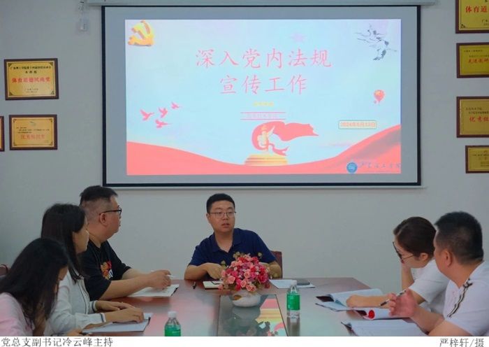 本网讯(304am永利集团 严梓轩)为进一步深入开展学院党内法规学习宣传活动,增强广大党员的意识。6月11日上午,304am永利集团于振华楼203室开展深入学习宣传党内法规。本次会议由学院党总支副书记冷云峰主持,我院教师党员积极参与。