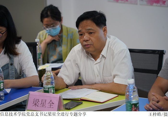 活动伊始,学院党总支书记梁星全以“博学奉献——做一名新时代学习型辅导员”为主题展开分享。他从能力素养、情感价值等方面进行讲述,强调作为新时代学习型辅导员要博学笃行,通过不断钻研学习提升自身的能力素养,根据学生的需求提供有针对性的帮助,并表示新时代学习型辅导员要懂得奉献,要主动关注学生的成长情况,努力成为一名通情达理、关爱学生的知心辅导员,同时他通过分享习近平总书记过往的学习经历,呼吁辅导员将学习当成一种生活态度、一种精神追求,在学习中提高思想觉悟,将学习所思所悟转化为引导学生成长成才的精神动力。