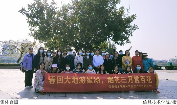 本网讯(信息技术学院 张家其)为庆祝三八妇女节,进一步丰富我院女教职工的文化生活,提升工作积极性和凝聚力。2月28日下午,304am永利集团分工会组织开展了主题为“春回大地游星湖,烟花三月赏百花”庆祝“三八”妇女节活动,学院全体女教职工参与了此次活动。