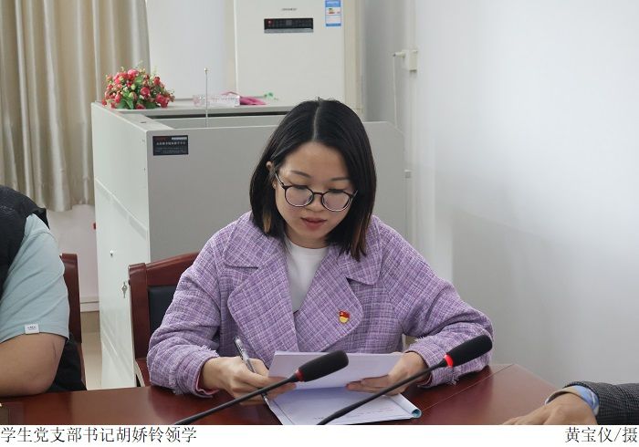 会上,学生党支部书记胡娇铃带领与会人员学习了“习近平在学习贯彻党的二十大精神研讨班开办式上发表的重要讲话”,强调正确理解和大力推进中国式现代化,概括提出并深入阐述中国式现代化理论式党的二十大的一个重大理论创新,是科学社会主义的最新重大成果。表示要通过认真学习领会中国式现代化理论,把思想和行动统一到习近平总书记重要讲话精神上来,扎实抓好各项教学工作,为扎实推进中国式现代化建设贡献力量。