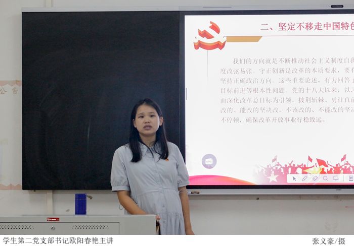 会议开始,欧阳春艳具体阐述了习近平总书记关于全面深化改革的新思想内容,高度强调了党的二十届三中全会精神的重要性,并生动诠释了全面深化改革的发展理念。她表示作为入党积极分子,应具有爱国情怀,以实现中华民族伟大复兴为己任,勇立时代潮头,争做时代先锋。
