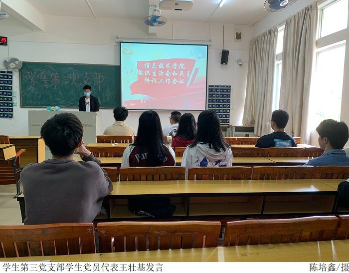 学生第三党支部学生党员代表王壮基针对自身的不足之处进行总结反思,定期对自己的思想、学习和工作进行总结,严格要求自己,争取早日成为一名真正的共产党员。