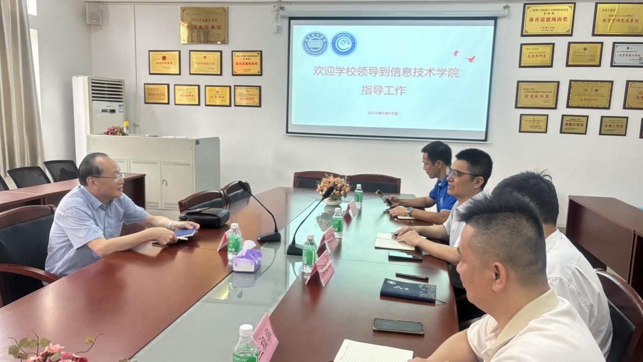 院长林显宁详细汇报了学院基本情况,包括专业设置情况、师资队伍建设、实验室建设、迎评整改等情况,尤其对于今年新引进106名青年教师的培养情况,向陈校长做了重点汇报。