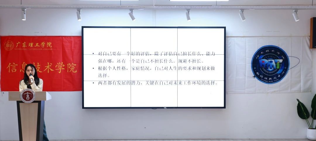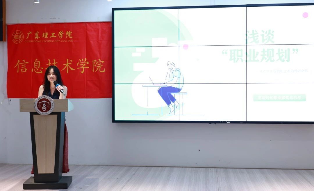 2017级软件工程7班苏爱玲担任个人工作室策划,她从创业者视角分享了职业规划经验。她提出“职业是自我探索的副产品”,强调职业规划的核心在于深度“认识自我”。同时,苏爱玲建议同学们在制定职业规划时,应充分结合个人兴趣与特质,以实现更科学的职业发展路径。