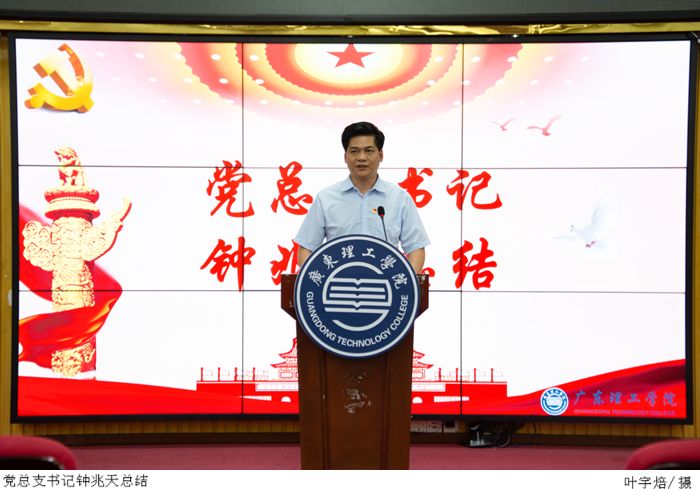 活动最后,党总支书记钟兆天上台致辞,他对此次比赛选手的演讲予以肯定。同时,他提议学生要结合自己身边的实际案例以更加深刻的感悟去理解普法修德、遵守校纪对学习生活的意义。此外,钟兆天指出此次比赛不仅是为了展示我院学生的风采,更是为了加强对立德修身、普法守纪的宣传。