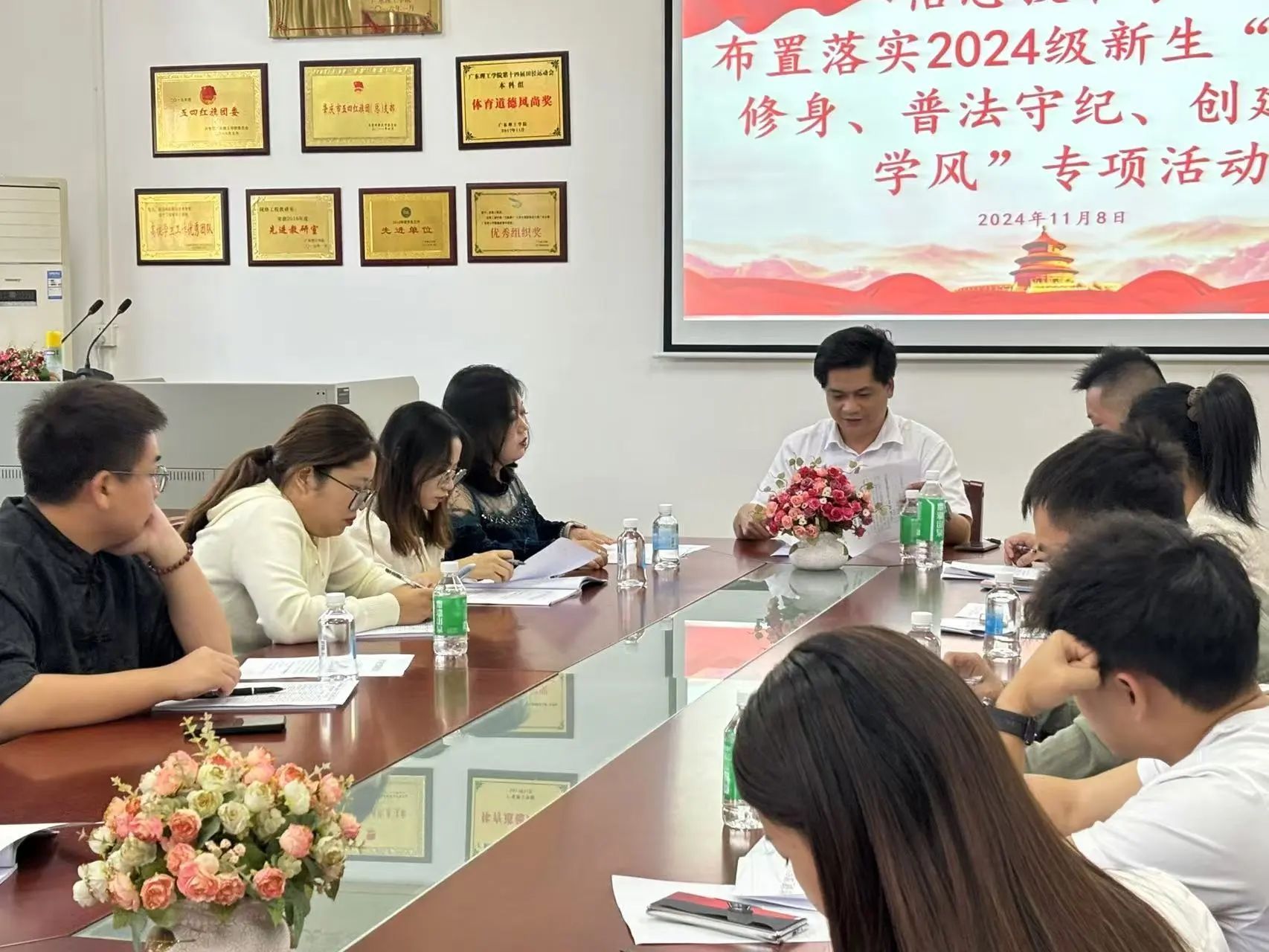 11月8日下午,304am永利集团于振华楼203室召开“立德、修身、普法守纪,创建优良学风”专项活动工作部署会。本次会议由信息技术院党总支书记钟兆天主持,全体2024级新生班辅导员参加会议。