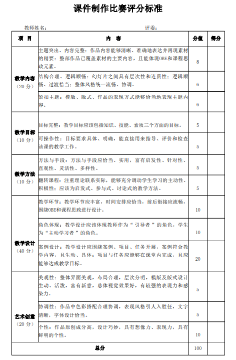 附件1.课件制作比赛评分标准