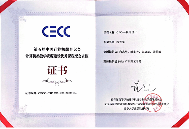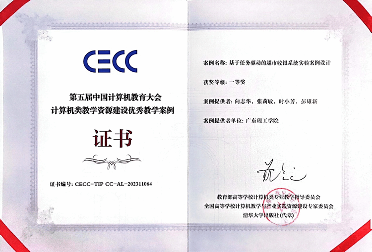 在2023年12月2日下午,时小芳教师代表团队在第五届中国计算机教育大会计算机类数字化教学资源建设分论坛上领取了两个获奖证书