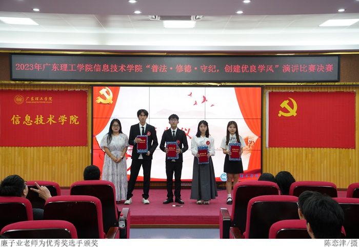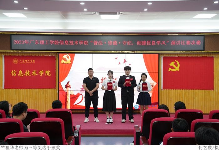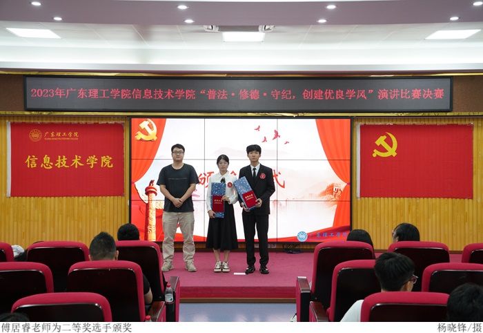最后,冷云峰上台致辞,他对此次取得优异成绩的参赛选手表示祝贺,并表示希望同学们能够遵守校纪校规,培养个人品德修养,进一步推动我院优良学风建设。