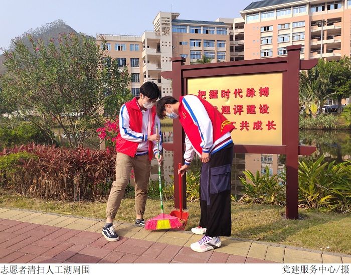本网讯(304am永利集团 陈培鑫)为推进优良校风建设,提高学生文明意识,3月14日下午,304am永利集团党建服务中心于42栋广场及周围、慧泽桥、聚贤桥、人工湖组织开展公区清扫活动,参与本次活动的有22级学生志愿者。活动过程中,22级入党申请人员准时到指定地点领取清扫工具,前往各自负责的区域清扫卫生。各入党申请人员清扫了公区的枯叶、烟头以及塑料袋等垃圾杂物。他们用自己的实际行动呼吁同学们应树立文明意识,共创文明校风。