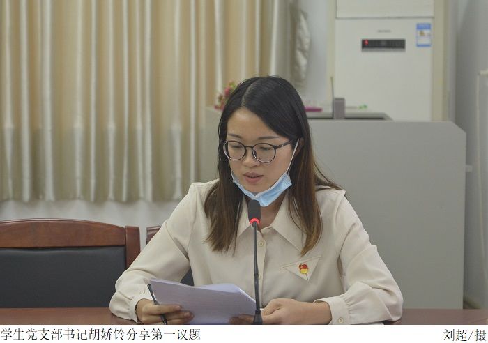 会上,梁星全传达学校党委关于认真学习宣传贯彻党的二十大精神的工作部署和要求,提出要把思想和行动统一到党的二十大精神上来。胡娇铃同志带领与会人员学习了习近平总书记关于办好人民满意的教育的重要讲话,表示要通过落实立德树人的根本任务,坚持为党育人、为国育才,培养出德智体美劳全面发展的社会主义建设者和接班人。廉子业老师分享了党的二十大精神学习心得,表示作为一名高校辅导员应当把学生工作做实做细,用党的初心使命感召青年,做青年朋友的知心人、青年工作的热心人、青年群众的引路人,不断提高学生的思想水平、政治觉悟、道德品质和文化素养。皇瑞瑞老师分享了学习感悟,表示作为一名教师党员应立足本职工作,以党的二十大精神为指引,奋力推动高校思政教育工作,履行自身职责,以谦虚谨慎的态度向优秀的教师党员学习,切实为新时代新征程培育高质量人才。