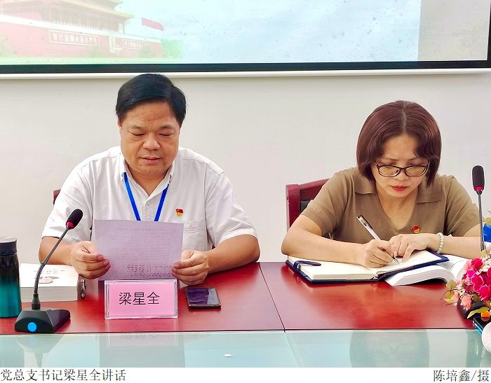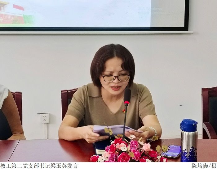 会上,梁星全带领参会人员学习了习近平给北京师范大学“优师计划”师范生的回信,提出需成为“有理想信念、有道德情操、有扎实学识、有仁爱之心”的“四有”好老师的要求,不断提升自身教书育人的本领,为培育德智体美劳全面发展的社会主义建设者和接班人贡献力量。梁玉英老师分享了学习成果,指出教师应帮助学生树立起崇高志向,通过充分利用课堂,实现思政同向而行,实现立德树人的目标。与会党员纷纷表示,今后也要以“四有”好老师的标准来严格要求自己,践行为党育人,为国育才的光荣使命。