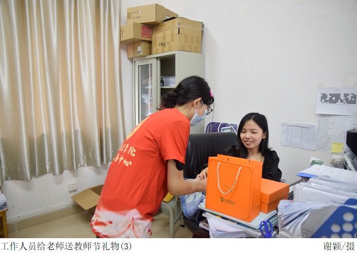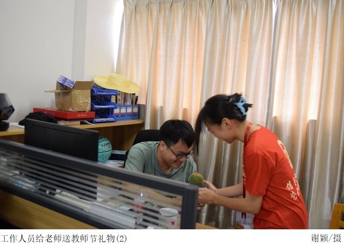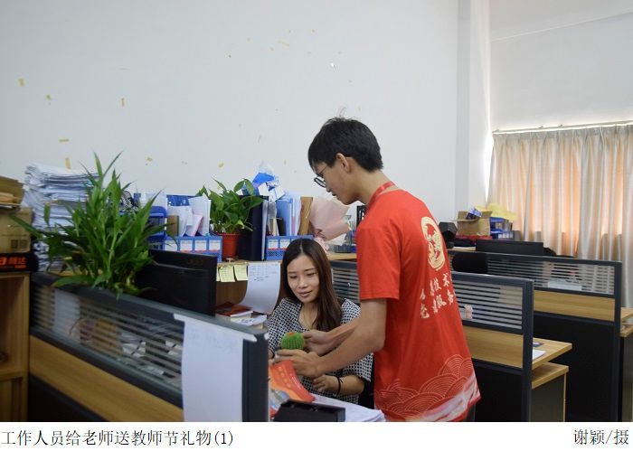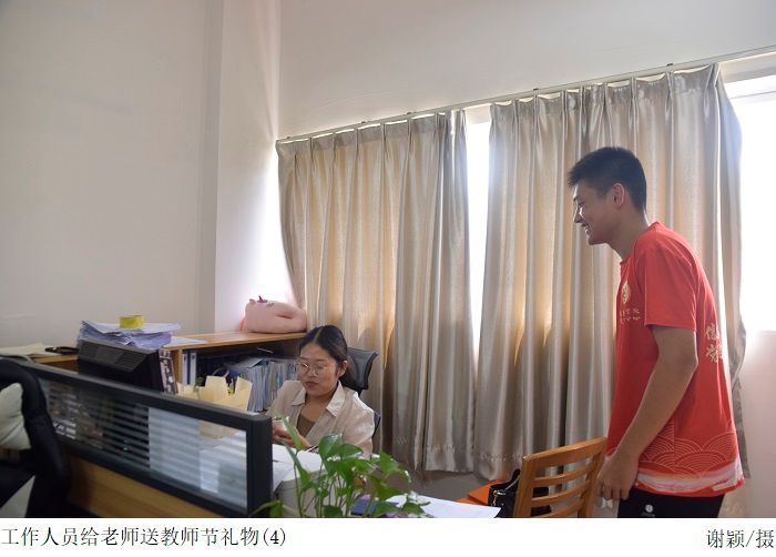 在本次活动中,全体成员按时到达指定地点集合,根据分组有序前往教师办公室。在献礼的过程中,党建服务中心成员向我院教师们献上最真挚的节日祝福,感谢我院教师们以德树人,师以匠心。