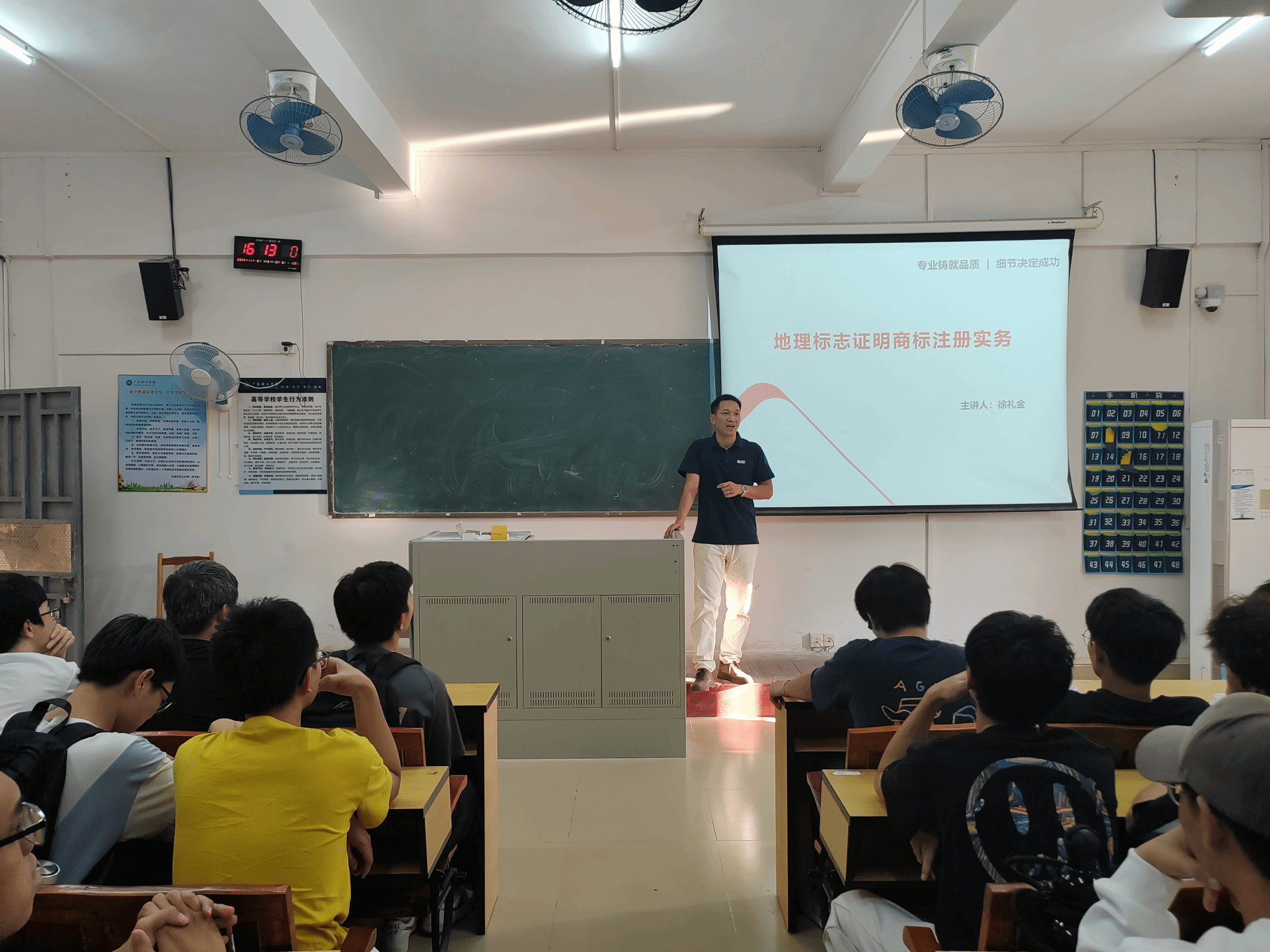 活动伊始,徐礼金副院长发表了热情洋溢的开场致辞。他强调,地理标志作为地方特色产品的“身份证”和“名片”,对于提升产品竞争力、促进地方经济发展具有重要意义。然而,当前地理标志领域的人才短缺问题日益凸显,因此,加强地理标志人才的培养显得尤为重要。随后,徐礼金副院长围绕地理标志的基本概念、申请与审查流程、保护策略与运用实践等方面进行了深入浅出的讲解。并结合国内外地理标志工作的成功案例,生动形象地展示了地理标志在推动区域经济发展中的重要作用。同时,还就如何运用信息技术手段提升地理标志的保护和管理水平进行了深入探讨,通过模拟申请地理标志、分析地理标志侵权案例等互动环节,让同学们得以将所学知识应用于实践中,进一步加深了同学们对地理标志工作的理解和认识。